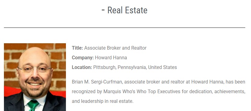 PITTSBURGH, PA, June 13, 2025 /24-7PressRelease/ — Brian M. Sergi-Curfman, Realtor® and associate broker with Howard Hanna, was selected by Marquis Who’s Who for a prominent feature in the April/May 2025 Pittsburgh edition of Forbes magazine.